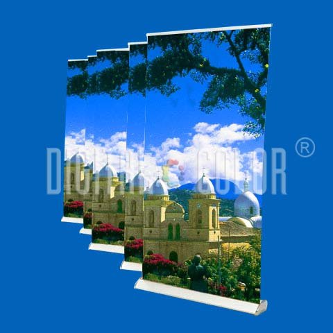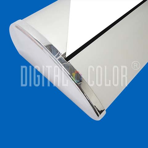 Easy Pull - Roll Up - Retrácil Deluxe 1x2 mts consta de una spectacular estructura fuerte de inmejorable calibre y diseño, elegante en aluminio con tapas cromadas, de fácil armado por su mecanismo permite que la imagen se enrolle en su inigualable base, incluye maleta de lona acolchada para protección de la estructura e imagen de fácil transporte. Destáquese con elegancia y distinción en pocos segundos, sólo requiere una persona para exhibirlo.
