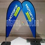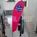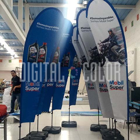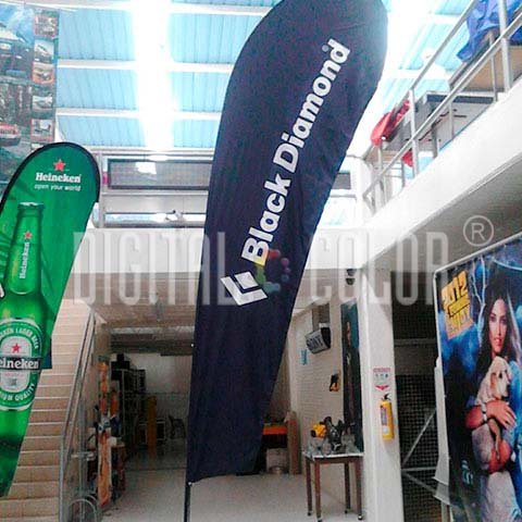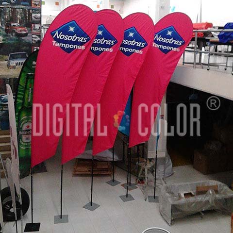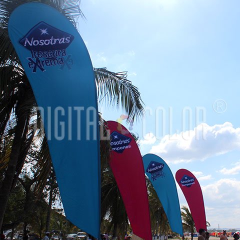 Las banderas Flag son imágenes exuberantes que llaman la atención en el mundo exterior por su forma, colorido y movimiento debido a que son impresas en telas finas de sublimación, la solución consta de tubos de aluminio resistentes ensamblados uno tras otro, su esquina flexible en fibra de vidrio asegura una curva perfecta en la parte superior de la bandera, fácil de ensamblar usted podrá obtener tallas XS, S, M, L y XL.