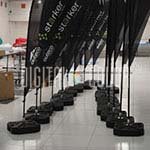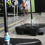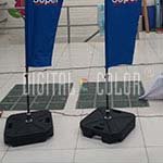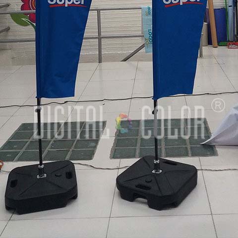 La Base Tanque R es especial para dar soporte a su bandera Flying tanto en espacios interiores o exteriores, consiste en un contenedor plástico que se puede llenar con agua o arena para mayor estabilidad. Posee un piñón que facilita la rotación de la bandera con el fin de que esta gire con el viento y capture la atención del público.